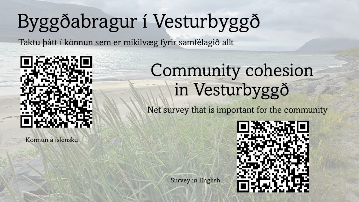 Residents are encouraged to participate in an online survey that forms part of a research project on community character, identity and the image of the newly merged municipality. The aim is to gather perspectives that will support future vision and development in the southern Westfjords.