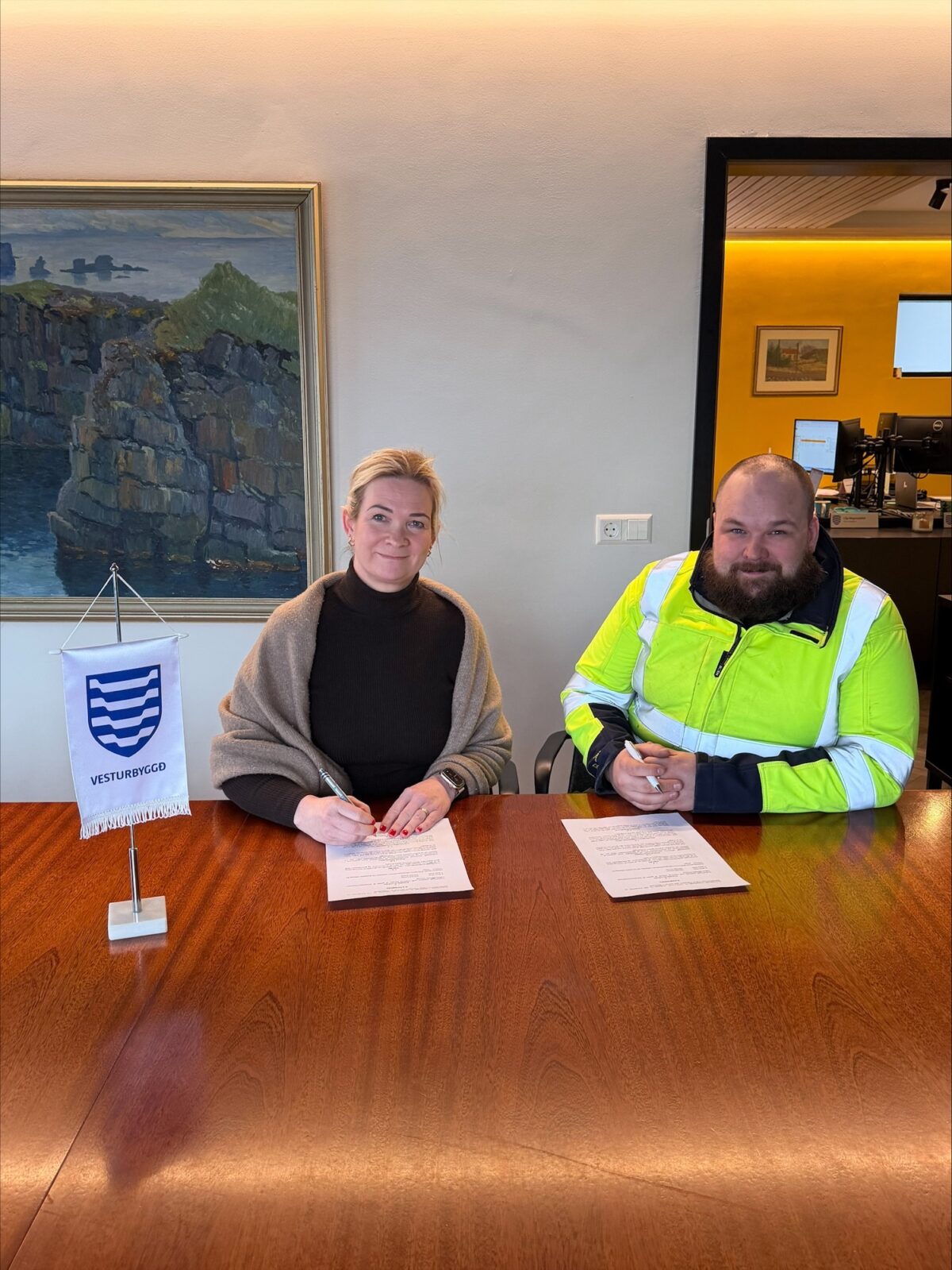 Samningurinn var undirritaður af Trausta Jóni Þóri Gíslasyni, formanni björgunarsveitarinnar Tálkna, og Gerði Björk Sveinsdóttur, bæjarstjóra.