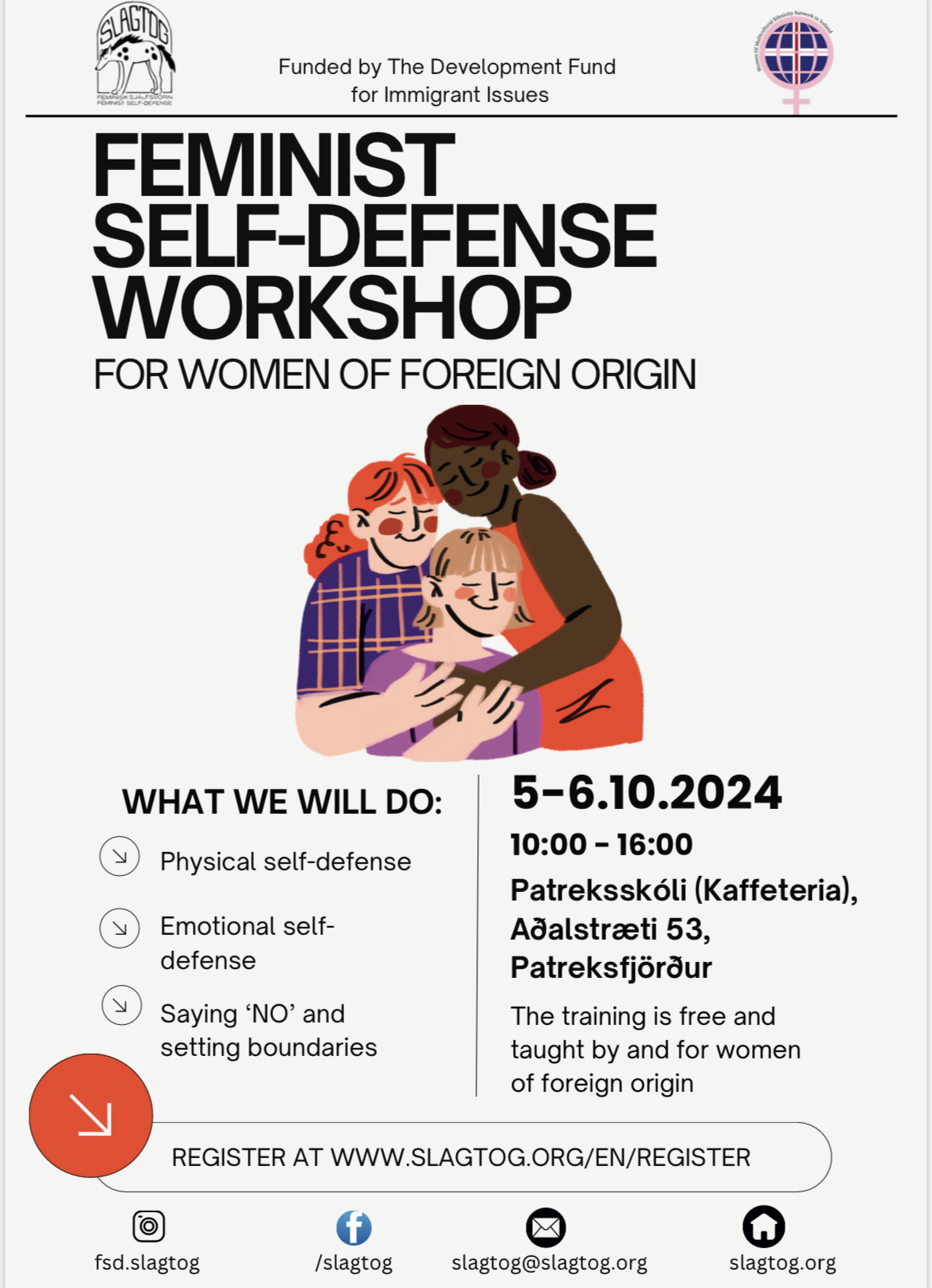 Dagana 5.-6. október verður sjálfsvarnarnámskeið í matsal Patreksskóla á Patreksfirði. Námskeiðið er á vegum Slagtogs og er ætlað konum af erlendum uppruna.