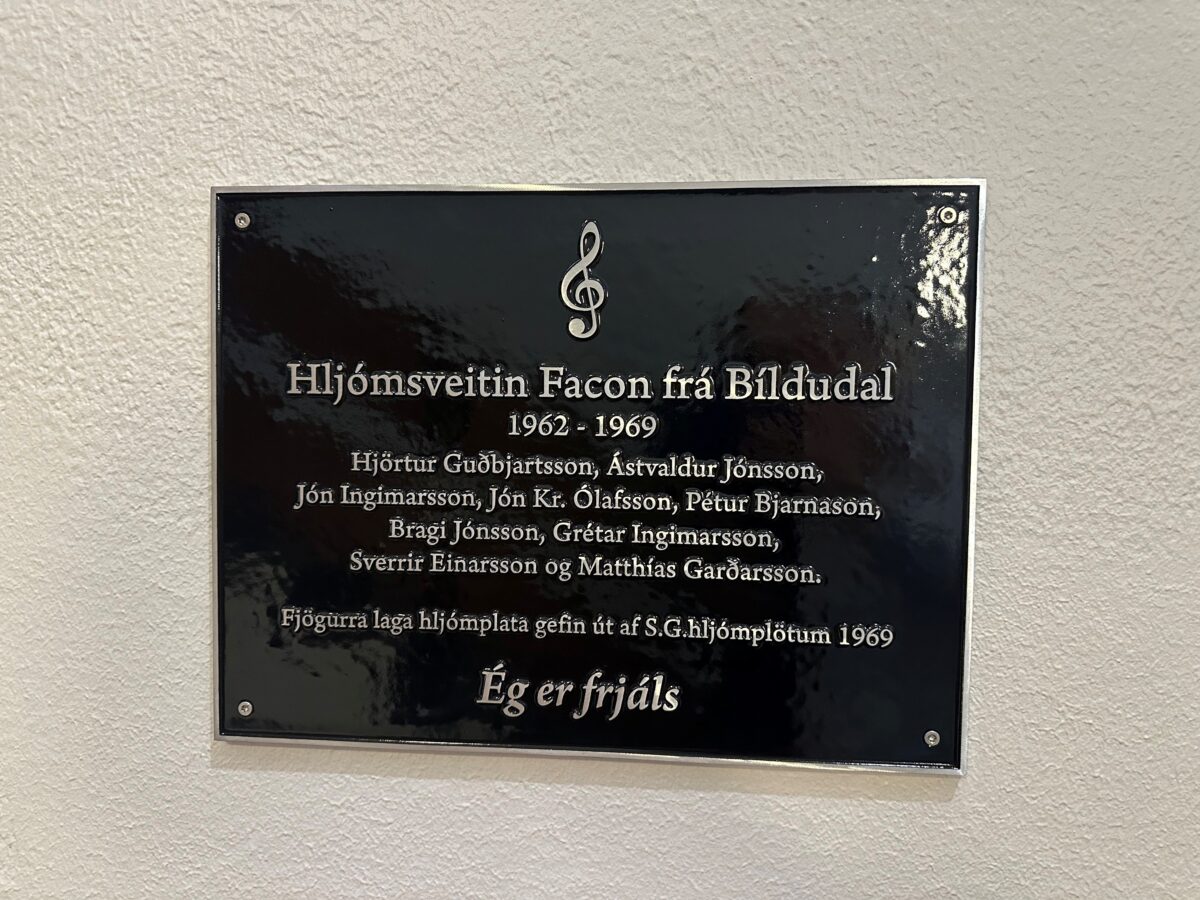 Nýr skjöldur til heiðurs hljómsveitinni Facon hefur verið afhjúpaður í félagsheimilinu Baldurshaga á Bíldudal.